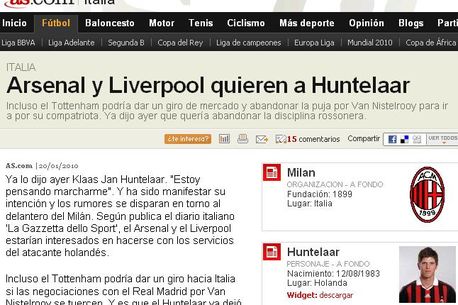 Arsenal pentru atacantul lui Milan, olandezul Huntelaar. Benitez