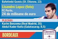 Campioana Bordeaux are un deficit, între ce a vândut și a cumpărat, de 20 de milioane de euro. Asta pentru că au plecat doar Diawara și Obertan, dar s-a făcut răscumpărarea lui Yoan Gourcuff de la AC Milan, operațiune de 15 milioane, și a fost adus portarul Carasso de la Toulouse pentru 8 milioane.