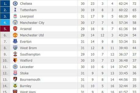 Cum și Chelsea s-a impus în derby-ul cu Manchester City, scor 2-1, Tottehnam rămâne la 7 puncte în spatele echipei lui Conte, cu opt etape înainte de final.