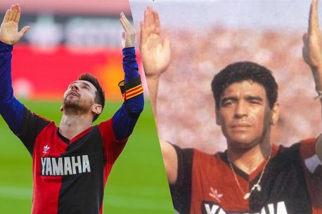 Messi le dedica su gol al pibe #10 con la camiseta que usó Diego en su etapa en Newell’s Old Boys #Messi #VivaElFutbol #Maradona pic.twitter.com/7v8SPuhtYE
