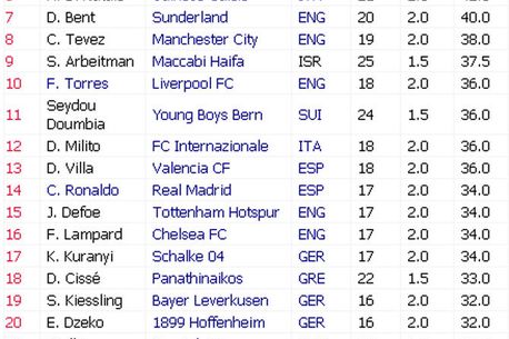 Duel extrem de strâns pentru "Gheata de aur" în Europa. Wayne Rooney este lider în clasament, dar vedetele lui Barcelona și Chelsea, Lionel Messi și respectiv Didier Drogba, îl urmează îndeaproape. Mai mult, în condițiile în care starul lui United ar putea lipsi de pe teren aproximativ o lună, din cauza accidentării suferite aseară, contra lui Bayern, în Liga Campionilor, englezul va ceda, probabil definitiv șefia clasamentului. Cele mai multe goluri în acest sezon au fost înscrise de Luis Suarez, de la Ajax - 29, dar atacantul "lăncierilor" ocupă abia locul 5, fiind tributare faptului că Eredivisie are un coeficient mai mic decât Anglia sau Spania. De notat că primele poziții sunt monopolizate de jucătorii care evoluează în Premier League, 5 dintre aceștia aflându-se în primele 10 locuri. Vârful lui Udinese, Antonio Di Natale, este singurul care salvează onoarea cluburilor din Serie A, acesta fiind singurul jucător din TOP 10. De remarcat că starul lui Real Madrid, Cristiano Ronaldo, ocupă doar poziția a 14, dar acesta are și o scuză: în prima jumătate a sezonului a pierdut mai multe partide din cauza unei accidentări. După ce a câștigat fără drept de apel "Gheata de Aur" în sezonul 2007-2008, cumulând atunci 62 de puncte în tricoul lui MAnchester United, lusitanul se vede acum depășit de jucători puțin cunoscuți publicului larg: Arbeitman, de la Maccabi Haifa și Seydou Doumbia, de la Young Boys Berna. Mult mai bine stă în clasament colegul său "galactic", "Pipita Higuain