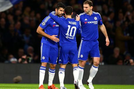 Branislav Ivanovic (foto – în dreapta), sărbătorind un gol marcat de Chelea, alături de Eden Hazard și Diego Costa