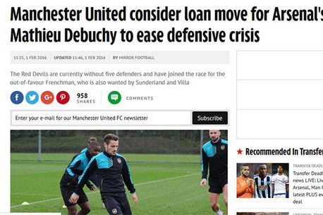 Daily Mail anunță că Mancester United e gata să deschidă negocierile cu Arsenal pentru transferul fundașului francez Mathieu Debuchy (30 de ani). Cumpărat de Arsene Wenger în 2014, pentru aproximativ 15 milioane de euro, după ce făcuse un sezon foarte bun la Newcastle, Debuchy a avut mari probleme cu accidentările în ultimele două sezoane și și-a pierdut locul de titular în fața lui Hector Bellerin (20 de ani).