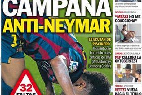 Spaniolii de la Sport.es scriu că în această perioadă s-a dat startul și unei campanii „Anti-Neymar”. Brazilianul este criticat pentru încercările sale repetate de a simula.