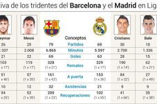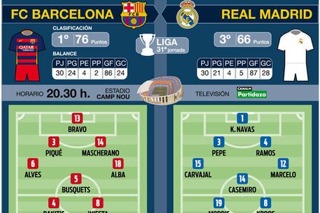 În ceea ce privește meciul în sine, vom avea din nou ocazia să vedem confruntarea dintre cei mai buni jucători din lume, Lionel Messi și Cristiano Ronaldo, și cele mai bune linii de atac ale momentului. Messi, Suarez și Neymar au marcat până acum de 69 de ori în campionat, cu șase goluri mai mult decât „tripleta” Ronaldo, Bale, Benzema. Madrilenii au însă de partea lor argumentul „eficienței”. În condițiile în care Bale și Benzema au avut perioade însemnate în care au lipsit de pe gazon, cei trei au o medie mai bună de goluri pe meci: 0,91 (63 de goluri în 69 de prezențe strânse împreună) față de 0,87 cât au atacanții Barcelonei (69 de goluri în 79 de prezențe). Vezi mai jos un grafic realizat de cotidianul spaniol AS.