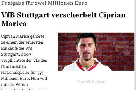 Aflat în turneul naționalei din America de Sud, Ciprian Marica a primit o veste proastă din partea lui Stuttgart. Nemții l-au scos la vânzare și sunt gata să îl dea oricărei echipe care oferă 2 milioane de euro în schimbul atacantului.
