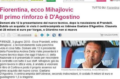 era favorit să preia unul din cele două posturi vacante, Fiorentina