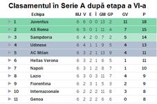 După victoria în fața lui Roma, Juventus s-a detașat în fruntea clasamentului din Serie A. Echipa antrenată de Massimiliano Allegri are 6 victorii din tot atâtea meciuri jucate, iar cele două goluri primite în partida cu Roma au fost primele din campionat în actuala stagiune.