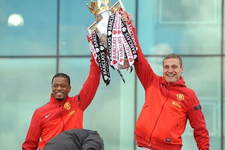 Presa engleză susține că Evra (stânga) ar putea pleca și el după ce Vidic (dreapta) o va părăsi pe United în vară