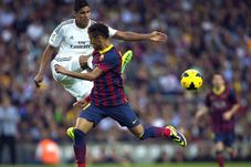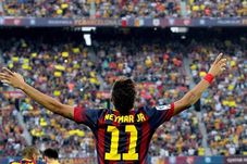 Doar pe tabelă lucrurile au stat diferit. Pentru că Neymar, care fusese implicat în ultimele trei goluri ale Barcei pe teren propriu, a „explodat” din nou. Brazilianul, adus în vară cu 57 de milioane de euro, și despre care s-a spus că nu va reuși în Europa, l-a zăpăcit pe Carvajal în prima repriză. Și a înscris în minutul 19, cu un șut cu efect, care l-a învins pe Diego Costa, mascat de doi coechipieri. A fost primul gol în primul „Clasic” pentru Neymar, care a devenit primul jucător care marchează în primul derby dintre Barca și Real după Jeffren, în noiembrie 2010. Și singurul până la pauză. Iar Barca a intrat în avantaj la cabine. Semn că gazdele aveau șanse mici să piardă! Nu o mai făcuseră pe „Camp Nou” când conduceau după 45 de minute împotriva Realului din februarie 1965! Iar madrilenii nu dădeau semne de viață, singura fază periculoasă venind după ce o reluare a lui Khedira, blocată de Valdes, a atins mâna lui Adriano, care era căzut în careul mic. Un henț involuntar, nesancționat de brigada de arbitri.