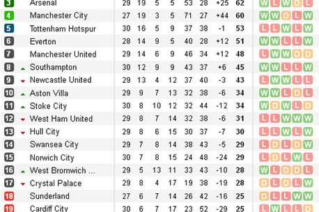 18:00 Aston Villa – Stoke 1-4 (Benteke ‘5 / Odemwingie ’22, Crouch ’26, N’Zonzi ’42, Cameron ’90)