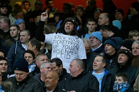 „Fotbalul fără fani nu înseamnă nimic„, „Sport pentru clasa muncitoare, prețuri pentru clasa business„, au fost mesajele „cormoranilor” pentru șefii lui Arsenal, care, în acest sezon au fost luați în colimator și de fanii lui City, pentru același motiv (vezi mai jos foto)