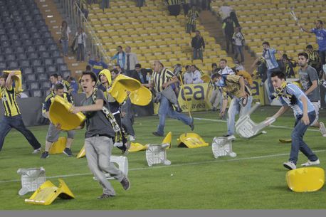 Mai mult, finalul a fost unul de coșmar, după ce arbitrul a dictat penalty în ultimele minute ale partidei, după o fază extrem de controversată. Fanii lui Fener nu au suportat umilința și nedreptatea și au pătruns pe teren, declanșând intervenția în forță a oamenilor de ordine