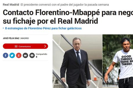 Peste 120 de milioane de euro va plăti Real Madrid pentru a-și asigura semnătura lui Mbappe. Conform Marca, Perez s-a întâlnit deja cu tatăl atacantului francez, pentru a se asigura că nu vor fi surprize în momentul în care părțile se vor așeza la masa negocierilor.