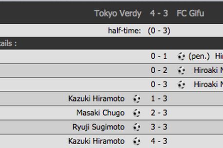Oaspeții au condus până în minutul 84 cu 3-0, grație unor reușite din prima parte a jocului, dar au pierdut partida. Gazdele au marcat de 4 ori în ultimele 6 minute, reușind cu siguranță cea mai spectaculoasă revenire a anului și, poate, din istorie. Rămâne însă sub semnul întrebării cât de corect a fost revirimentul lui Tokyo Verdy.