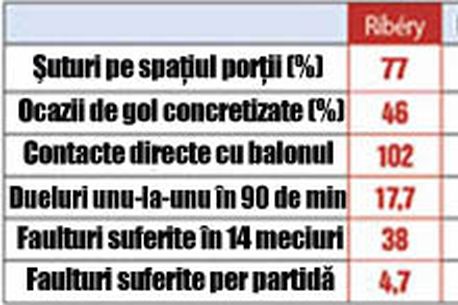 Potrivit Opta-date-Sport, în dreptul lui Ribery pot fi trecute niște cifre care, odată citite și analizate de un profesionist, spun lucrurilor pe nume. La ora actuală, francezul Franck Ribery este cel mai valoros fotbalist din lume. Iată dovada, cu mențiunea că este vorba de o medie calculată pentru 14 meciuri jucate în ligile naționale de el și de concurenții săi, nefiind luate în considerare meciurile din cupele europene sau cele disputate sub tricourile naționalelor: