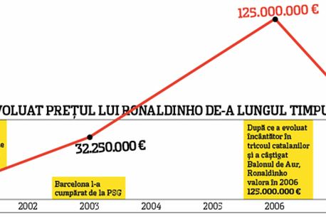 Acum, Ronaldinho nu mai valorează decât 25 de milioane de euro, sumă pe care Barcelona pare dispusă să o accepte de la AC Milan pentru ca fostul Balon de Aur să îmbrace tricoul „Diavolului“. Nu mai este decât o chestiune de timp până când acest lucru va deveni realitate.