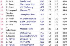 evoluează și ocupă doar locul 5 în clasament. De notat că Rooney,