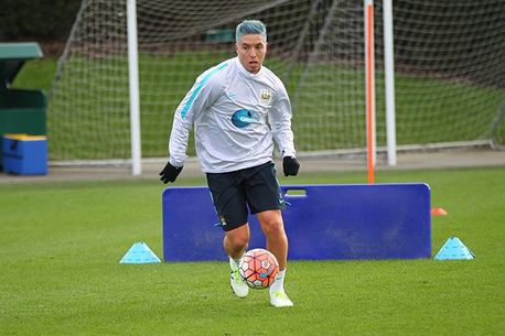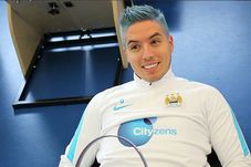 Nasri s-a prezentat la ședința de pregătire de astăzi cu părul vopsit în culorile lui Manchester City și asortat aproape perfect la echipamentul de antrenament al „cetățenilor”.