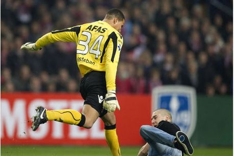 În minutul 35 al partidei, la scorul de 1-0, un suporter al gazdelor a intrat pe teren și, venind din spate, a încercat să-l lovească în figură pe portarul lui AZ, Esteban Alvaredo (22 de ani). Costaricanul a ripostat ca un veritabil luptător de K1 și a fost eliminat de arbitru, moment în care antrenorul Gertjan Verbeek și-a scos echipa de pe teren!