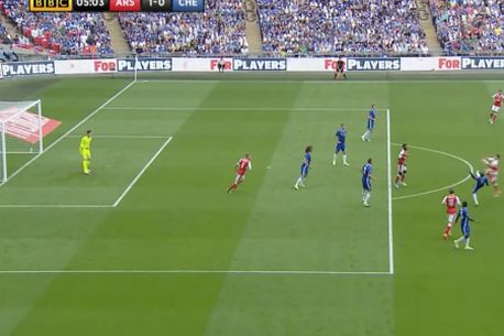 Minutul 6: GOL CONTROVERSAT AL LUI ARSENAL! Alexis Sanchez încearcă o pasă pentru Ramsey, David Luiz respinge, apoi Kante degajează în mâna chilianului de la Arsenal, dar arbitrul nu oprește faza. Mingea sare spre Ramsey, aflat în offside, dar galezul nu se implică și-l lasă pe Sanchez să-și continue acțiunea și să deschidă scorul cu un șut pe lângă Courtois. Jucătorii lui Chelsea protestează, centrarul Anthony Taylor se consultă cu asistentul de pe partea dreaptă, apoi acordă golul.