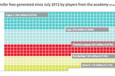 Campionatul care stă cel mai bine la instruirea și dezvoltarea propriilor jucători este cel al Franței. Ligue 1 are 4 reprezentante în top 10 cele mai productive academii și în ultimii 3 ani a obținut din această sursă venituri de 292 milioane de euro. Pe locul 2 se află campionatul Spaniei, care dă tot 4 reprezentante în top 10, dar veniturile totale au fost de 276 milioane de euro.