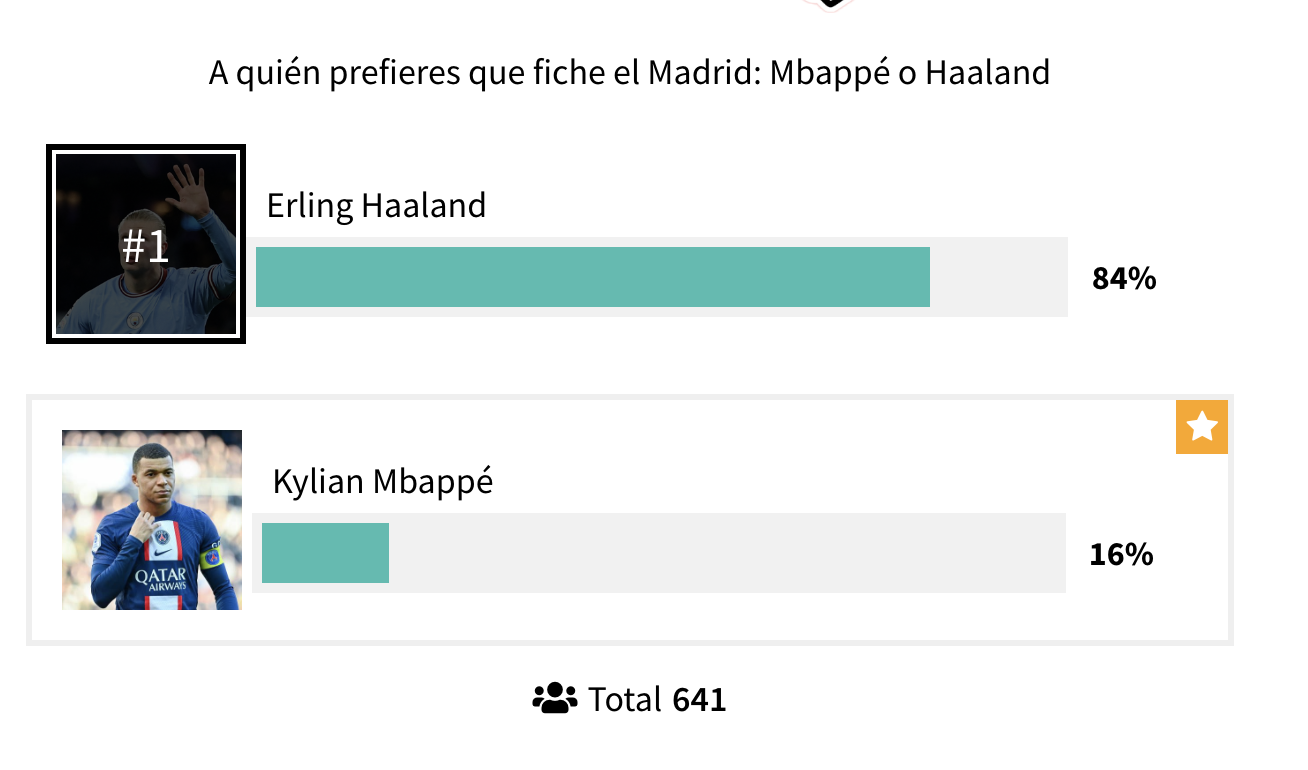 Salariile celor patru însumează peste 50 de milioane de euro anual, astfel că plecările lor vor face loc pentru sosirile fotbaliștilor doriți de Florentino Perez. Sursa citată a efectuat și un sondaj online în care suporterii au fost chestionați pe cine ar dori să vadă la Real Madrid, iar în urma deciziei lui Mbappe de a prelungi contractul cu PSG în vara trecută și a refuza oferta „Galacticilor”, fanii au decis într-o proporție covârșitoare că norvegianul Haaland este alesul.