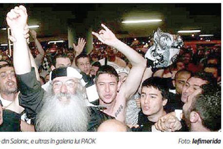 În galeria formației din Salonic vin meci de meci și câțiva preoți. Unul dintre ei a fost la un pas să fie exclus din rândurile Bisericii pentru huliganism