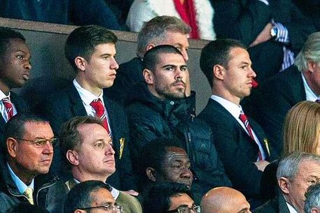 Victor Valdes (centru), prezent pe Old Trafford la confruntarea dintre Manchester United și Chelsea (scor final 1-1)