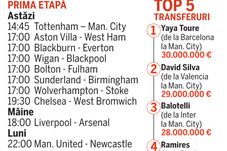 Noul sezon din Premier League, care începe azi, se anunță a fi unul dintre cele mai disputate din istorie. Dacă echipele din „Big Four" nu au făcut cine știe ce transferuri, în schimb Manchester City a cheltuit 120 de milioane de euro în această vară și atacă, având șanse reale, titlul de campioană. Șeicii de la Manchester City și-au făcut de cap și în această vară! Kolarov, Yaya Toure, David Silva, Boateng și Balotelli i-au fost puși la dispoziție antrenorului Mancini, care nu mai are voie acum să mai rateze calificarea în Liga Campionilor în sezonul viitor. Spre deosebire de City, criza pare că i-a afectat pe cei patru „granzi" din Premier League. Campioana Chelsea l-a adus pe Benayoun, de la rivala Liverpool, dar l-a pierdut în dauna „cormoranilor" pe Joe Cole. „Chicarito" Hernandez e marele pariu al lui Sir Alex Ferguson, iar pentru Arsenal, pe lângă sosirea lui Chamakh, marele câștig e păstrarea lui Fabregas. 29 de milioane de euro pe sezon pentru Ibrahimovic! Deși astăzi se joacă prima etapă, „cetățenii" dau semne că nu vor să se oprească și sunt aproape de aducerea lui James Milner, de la Villa, dar și de o megalovitură, Zlatan Ibrahimovic. Șeicii lui City i-au făcut o ofertă năucitoare atacantului Barcelonei: 116 milioane de euro pentru următorii patru ani, salariul care l-ar transforma pe suedez în cel mai bine plătit jucător din lume. Tamaș debutează pe terenul lui Chelsea După ce a impresionat în cele patru luni petrecute la West Bromwich, în liga secundă, Gab