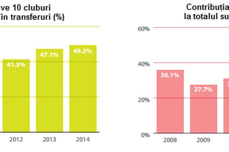 Trendul ascendent al investițiilor post-criză și dominația financiară a fotbalului din Anglia. Studiu financiar realizat de specialiști din Elveția asupra sumelor cheltuite de marile campionate ale Europei pe transferurile din perioada 2008-2014