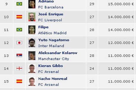 O cotă ce îl plasează în top 25 cei mai buni fundași stânga din lume – Patrice Evra (Man. United) sau Aleksandr Kolarov (Manchester City), de exemplu, sunt cotați la 11 milioane de euro și în primii 50 de fundași centrali.