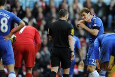 Branislav Ivanovic îi arată arbitrului cum a fost mușcat de Suarez. Uruguayanul nu a fost eliminat și a marcat golul de 2-2. Ulterior a fost suspendat
