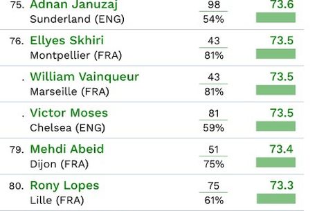 Pe prima poziție nu se află Coutinho, Messi sau Alexis Sanchez, ci Adama Traore, jucătorul lui Middlesbrough! Topul se realizează pe baza unui raport între încercările de dribling și procentul de driblinguri reușite. Sunt luați în calcul numai jucătorii din cele cinci campionate de top al Europei: Anglia, Spania, Franța, Germania și Italia. Ibericul ocupă prima poziție cu un procent de reușită de 70%. Podiumul e completat de Eden Hazard (Chelsea) și Allan Saint-Maximin (Bastia).
