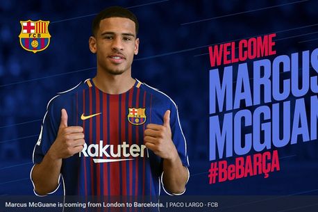 FC Barcelona a anunțat, marți, pe site-ul oficial, că l-a transferat pe mijlocașul englez Marcus McGuane, în vârstă 18 ani, de la Arsenal Londra.