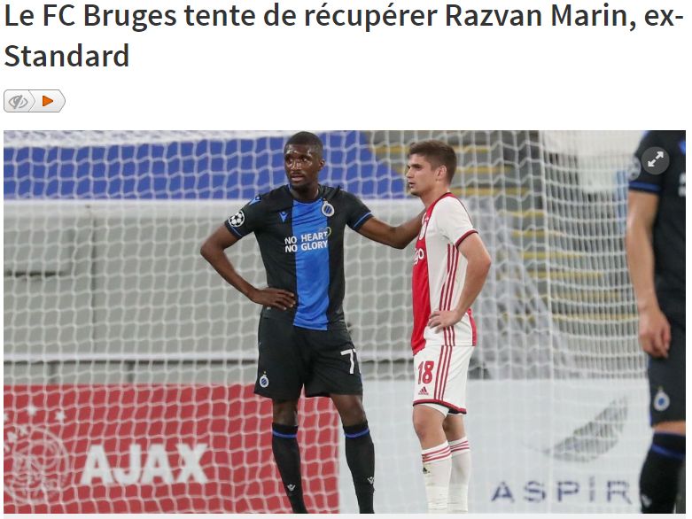 Salvarea lui Răzvan Marin poate veni de la FC Brugge. RTBF.be, care citează Het Nieuwsblad, anunță că Răzvan Marin poate face cale întoarsă în Belgia, acolo unde este dorit de multipla campioană a Belgiei. Sursa citată notează că Brugge a făcut deja prima ofertă, refuzată de Ajax, dar că belgienii pregătesc un al doilea atac. RTBF.be scrie că răspunsul final ar putea veni săptămâna viitoare.