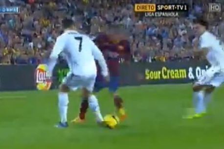 Starul Realului a trăit un moment umilitor în minutul 84 când Dani Alves i-a trecut mingea printre picioare și a sprintat spre poarta lui Diego Lopez.
