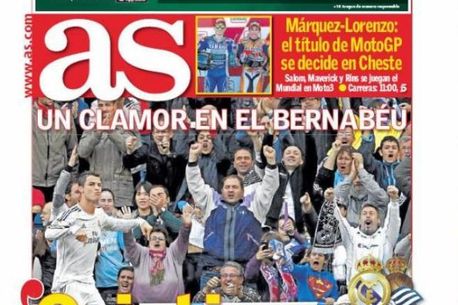„19 hat-trick-uri și 20 de goluri din lovituri libere în La Liga” scrie AS pe pagina sa online, în timp ce în ediția printată titrează: „Un strigăt răsună de pe Bernabeu: Cristiano, Balonul de Aur”
