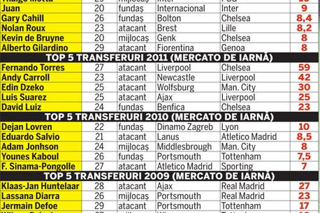 Cluburile „grele” din Europa nu au mai aruncat banii pe transferuri ca iernile trecute, poate și din cauza țepelor pe care și le-au luat anul trecut. Cel mai elocvent exemplu, Fernando Torres, care la începutul anului trecut a costat-o pe Chelsea 59 de milioane de euro și în 2011 nu a reușit decât cinci goluri pentru londonezi, în 44 de meciuri! Un alt motiv este și noua regulă a fair-play-ului financiar, care prevede ca în sezonul 2013-2014 cluburile să raporteze pierderi de maximum 45 de milioane de euro. Și cele mai „prudente” au fost echipele din Anglia, care iarna trecută au transferat jucători de 270 de milioane de euro, iar acum doar de 72 de milioane! „Preocuparea cluburilor europene pentru a fi sustenabile financiar în anii viitori este mai pregnantă acum decât în ultimii 20 de ani. De aceea nu vom mai vedea bani cheltuiți inconștient în 2012”, a explicat Dan Jones, specialist Deloitte.