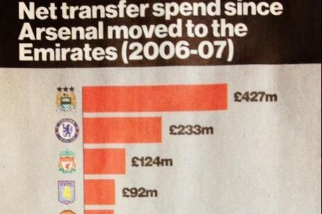 Un clasament al cluburilor engleze, făcut pe baza investițiilor în transferuri, o poziționează pe City pe primul loc, cu 427 milioane de lire (530 milioane de euro). La polul opus se află Arsenal, care a înregistrat un profit de 40 de milioane de lire (50 de milioane de euro). Numai 3 alte echipe sunt „pe plus”: Wigan, Newcastle și Reading.