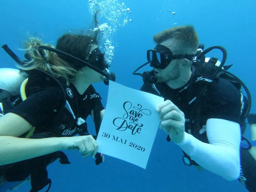 La doi ani distanță după ce s-au logodit, cei doi au profitat de această vacanță pentru a face publică data celui mai important eveniment din viața lor, nunta. Și au făcut-o într-un mod cât mai original. Sub apă! Alex și Adelina s-au echipat pentru scuba diving, iar odată ajunși sub apă le-au transmis prietenilor să-și salveze data de 30 mai 2020 în agendă.