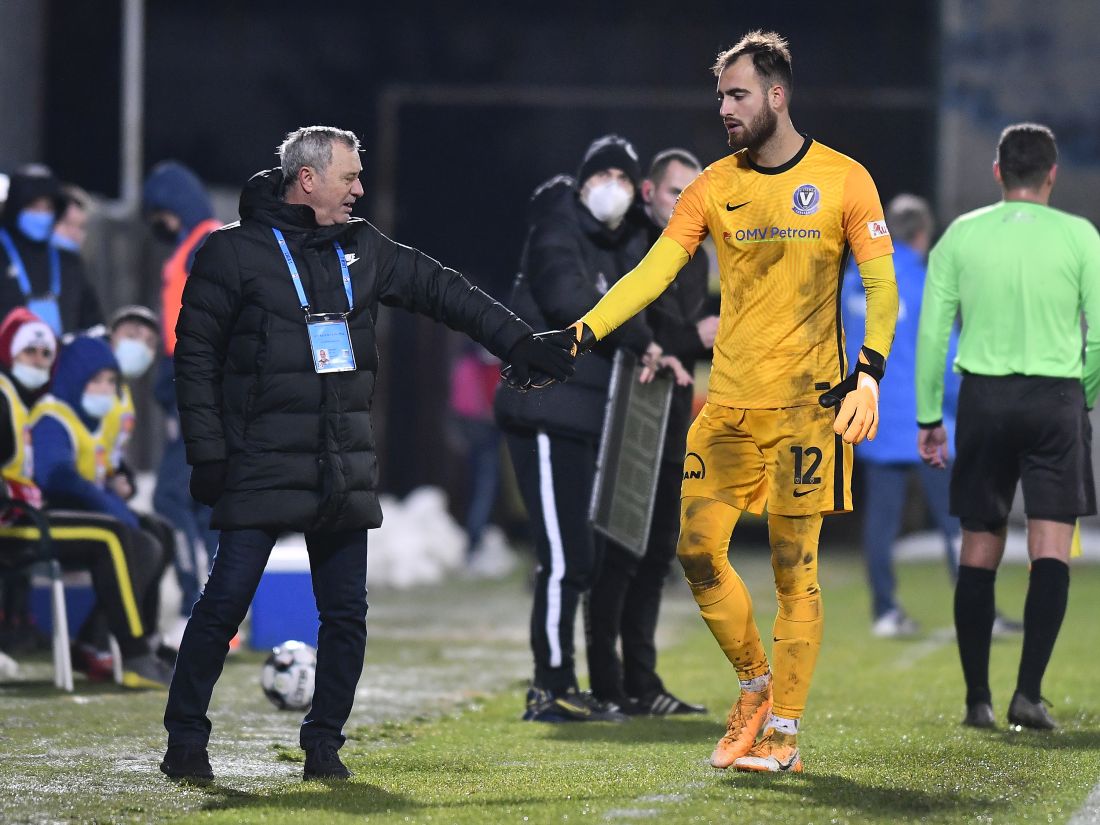 (Mircea Rednic îl incurajează pe Valentin Cojocaru eliminat în meciul din decembrie 2020 dintre Chindia Târgoviște și Viitorul Constanța / FOTO: Razvan Pasarica / SPORT PICTURES)