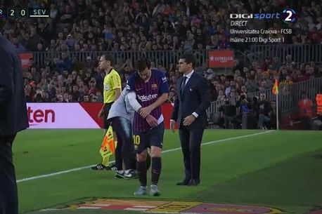 Leo Messi s-a accidentat undeva după primul sfert de oră al partidei de pe Camp Nou, când tabela indica deja 2-0 pentru catalani. Argentinianul, care a marcat în minutul 12, a căzut foarte rău pe mâna dreaptă după un duel pentru balonul cu un adversar. Decarul lui Valverde a stat secunde bune întins pe gazon cu dureri, iar medicii s-au chinuit să-l refacă, dar după câteva minute eforturile s-au dovedit a fi fără succes.