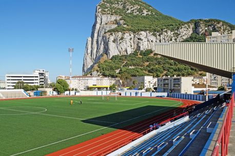 Victoria Stadium, o arenă pitorească, cu vizibilitate la celebrele stânci ale Gibraltarului