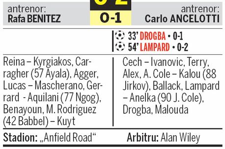 probleme, cu 2-0, pe „Anfield Road” în fața lui FC Liverpool.