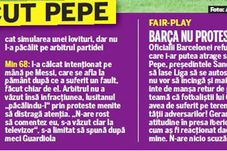 Barcelona a predat o nouă lecție de fotbal pe „Santiago Bernabeu”, unde a câștigat cu 2-1, în manșa tur a sferturilor Cupei Spaniei. Catalanii au revenit din nou de la 0-1, așa cum s-a întâmplat la ultimul derby câștigat în campionat (3-1), dar victoria oaspeților nu ar fi fost posibilă fără gafa lui Pepe (28 de ani) de la golul egalizator (49). Portughezul s-a umplut de ridicol și a sfârșit prin a se cere înlocuit în minutul 80 al partidei!