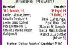 Având pe conștiință golul de 1-1 marcat de Puyol (49), Pepe a fost la un pas să-i trimită în spital pe Busquets și pe Messi, încheind meciul în genunchi. Conștient că a avut o prestație ridicolă, Pepe s-a cerut afară în minutul 80, când a stârnit din nou zâmbete în tribune: a simulat o accidentare și l-a forțat pe Mourinho să-l înlocuiască cu Granero!