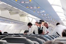 Pe drum jucătorii au fost serviți cu fructe proaspete, curățate și tăiate: mere, pere, kiwi și mango. Și au servit sucuri neacidulate. Când însoțitorii de bord le-au servit și alune, a început „nebunia”. Pentru că după ce au mâncat câteva boabe, au început să arunce unii în alții cu restul boabelor! În joc s-a prins și tehnicianul Jose Mourinho, care a luat la țintă scaunele din față unde se aflau jucătorii săi. Drumul până la Valencia a durat aproximativ 45 de minute, însă vremea s-a înrăutățit pe la jumătatea distanței, când căpitanul aeronavei le-a solicitat pasagerilor să își cupleze centurile, pentru că va urma o zonă de turbulențe. După ce aeronava a aterizat în siguranță pe aeroportul din Valencia, căpitanul a fost răsplătit cu câteva aplauze răzlețe din partea unor jucători. Trebuie menționat că, la meciurile din campionat, Real Madrid nu folosește avionul personal, denumit „La Saeta”, însă și așa aeronava companiei Iberia, cu care s-a făcut deplasarea, avea pe spătarele scaunelor huse cu logo-ul grupării spaniole.