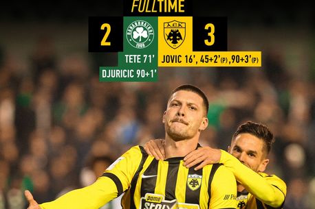 A fost o nebunie de meci la Atena, între cele două rivale de tradiție ale orașului, Panathinaikos și AEK. Oaspeții au deschis scorul după un sfert de oră, prin Jovic, dar 10 minute mai târziu Swiderski a ratat un penalty pentru „Pana”. Și AEK a beneficiat de o lovitură de la 11 metri, în prelungirile primei reprize, transformată de același Jovic.