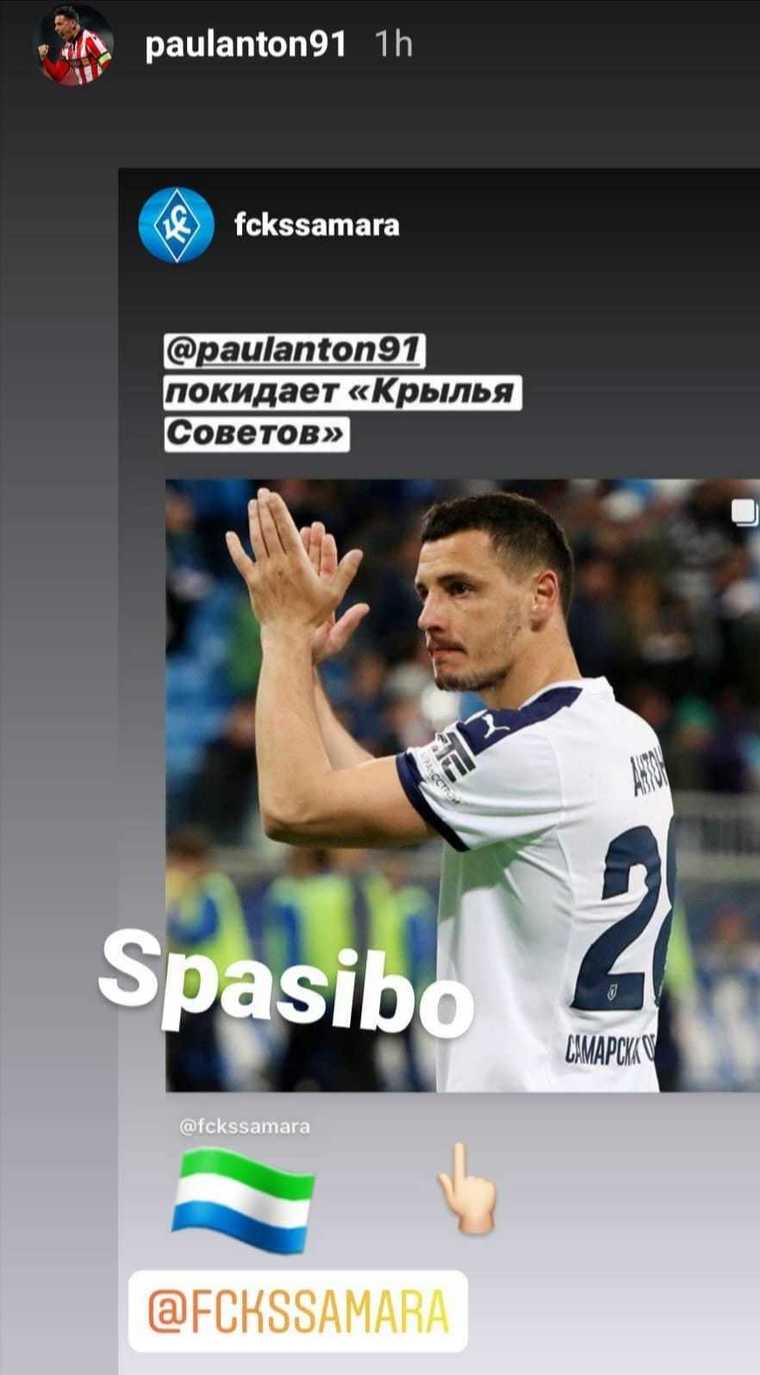 Fostul căpitan a lui Dinamo, Paul Anton, a fost pus pe liber de Krylya Sovetov Samara. Rușii au anunțat despărțirea, iar mijlocașul a confirmat încetarea contractului cu echipa la care joacă din 2018.
